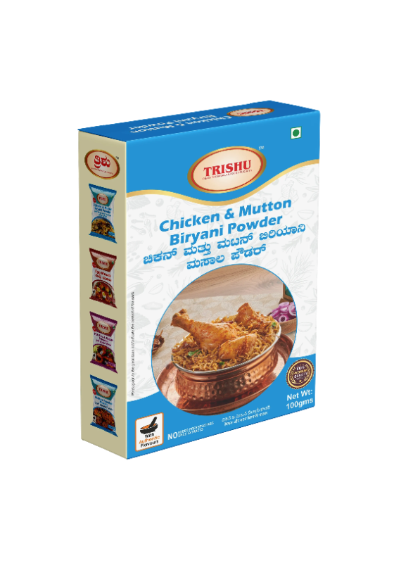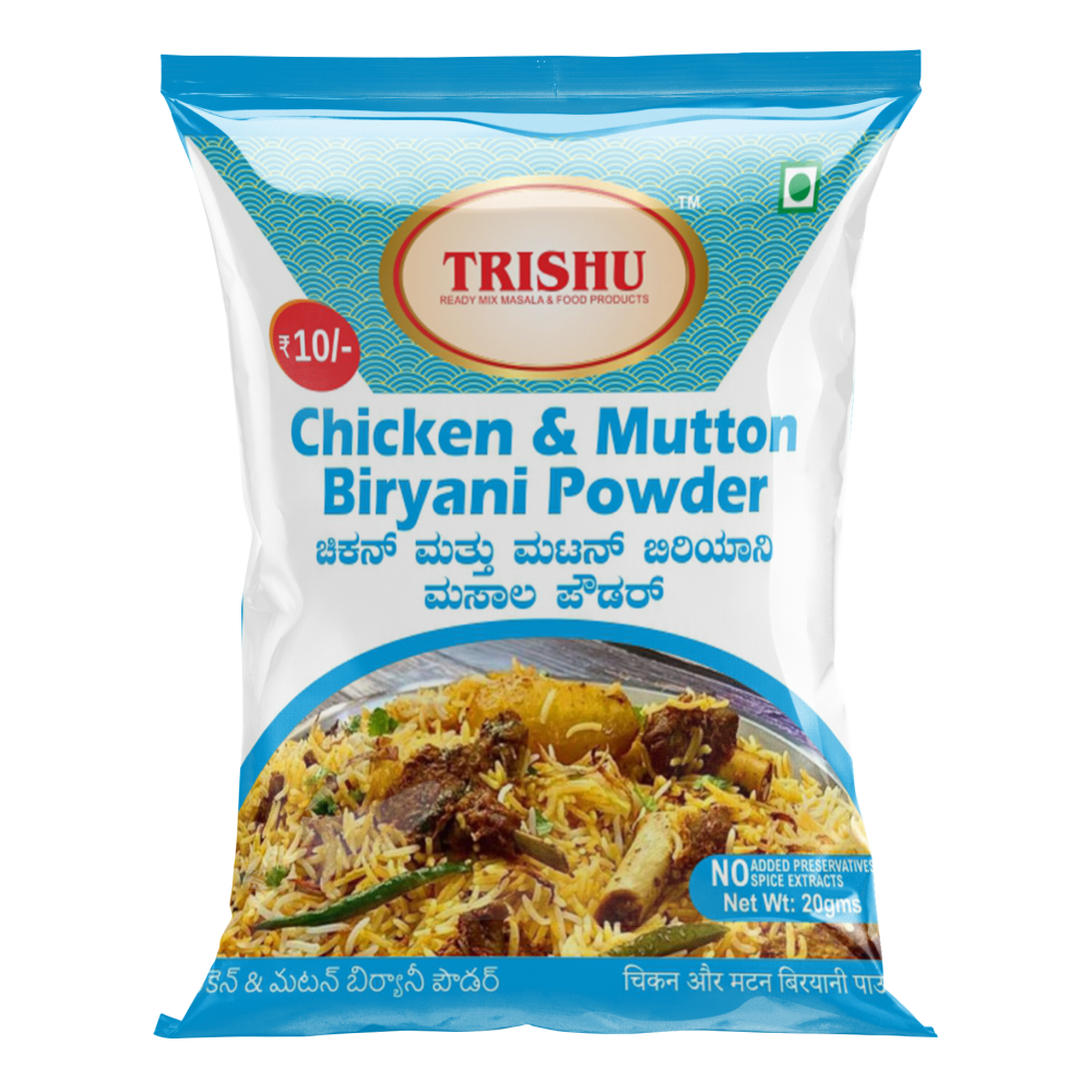 Enjoy the authentic, rich, and aromatic taste of homemade biryani with Trishu Chicken & Mutton Biryani Masala. Made from a pure, natural, and traditionally blended mix of premium spices, this masala ensures a perfect balance of flavor, spice, and fragrance for an unforgettable biryani experience.